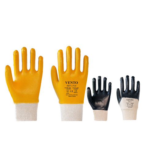Pamuk astar üzerine nitril kaplı iş eldiveni.