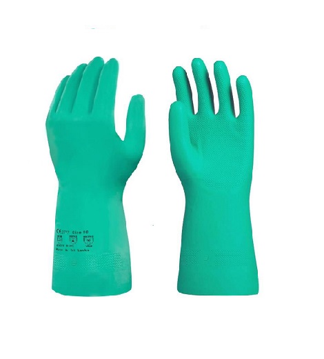 - Pamuk astarlı kimyasal koruyucu nitril iş eldiveni.